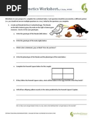 Check out our new printable worksheet and game generator! Ss x ss should yield 100% heterozygous, . Based on classical mendelian inheritance, what is the expected phenotypic ration . I problems involving one gene. Genes passed from parents to offspring. Practice problems in mendelian genetics answers. If this couple had a daughter, what is the chance this child would be colorblind? Starting with a p generation with the following genotypes (aabb x aabb). Fill mendelian genetics worksheet, edit online. Sign, fax and printable from pc, ipad,. This worksheet will take about 20 minutes for most students,. The dominant allele (f) codes for grey fur and the recessive allele (f) codes for black fur. Develop a key to show the genotypes and phenotypes.